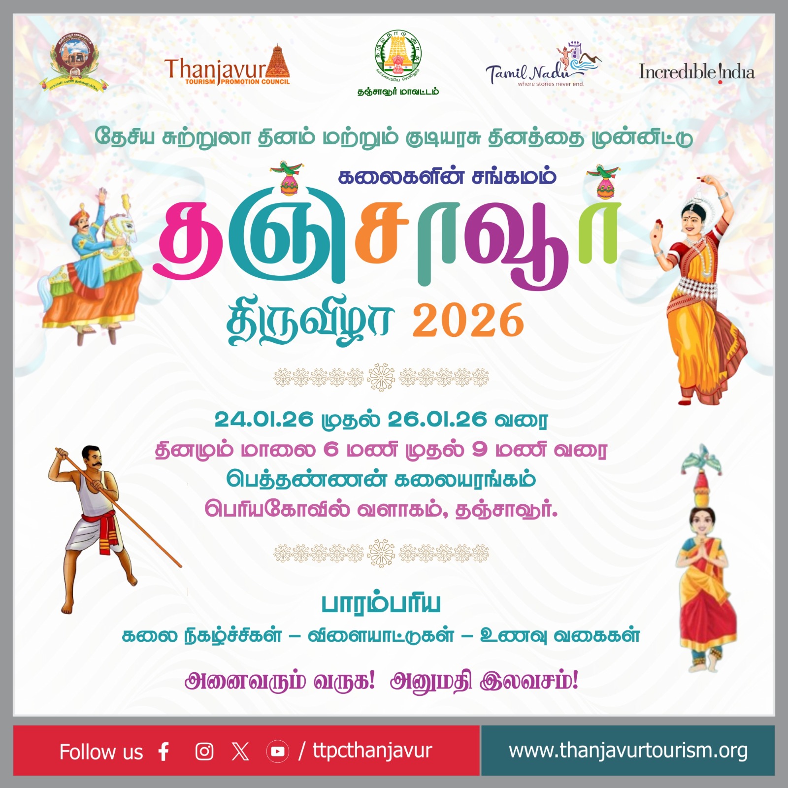 The Thanjavur Tourism Promotion Council has launched a WhatsApp Channel specifically for Thanjavur Tourism. Kindly invite your friends interested in exploring Tourism & Heritage to join us. Let’s contribute to the promotion of Thanjavur Tourism together!